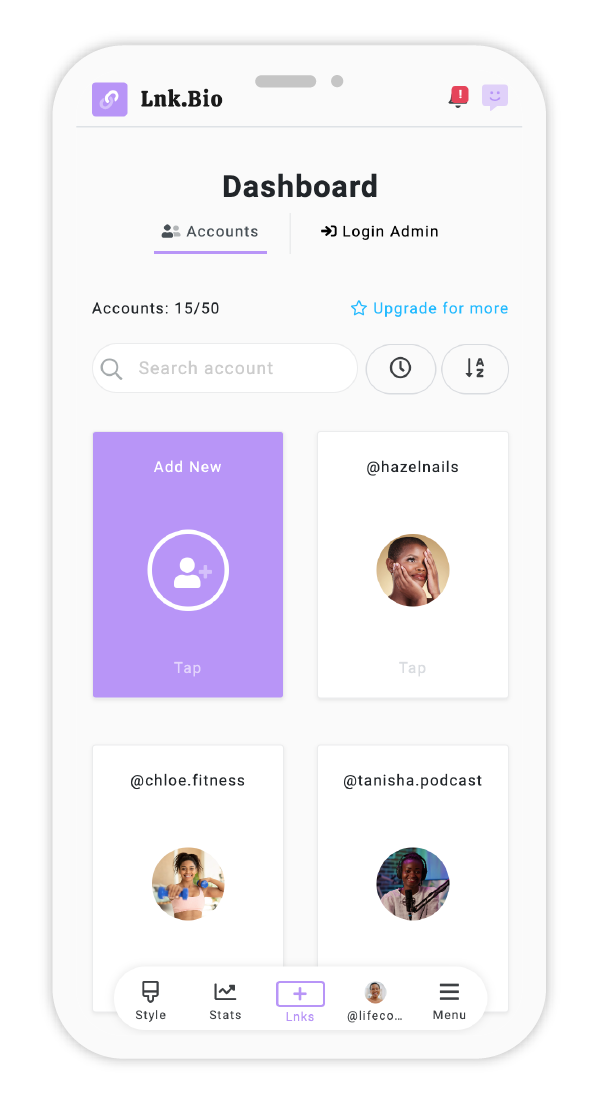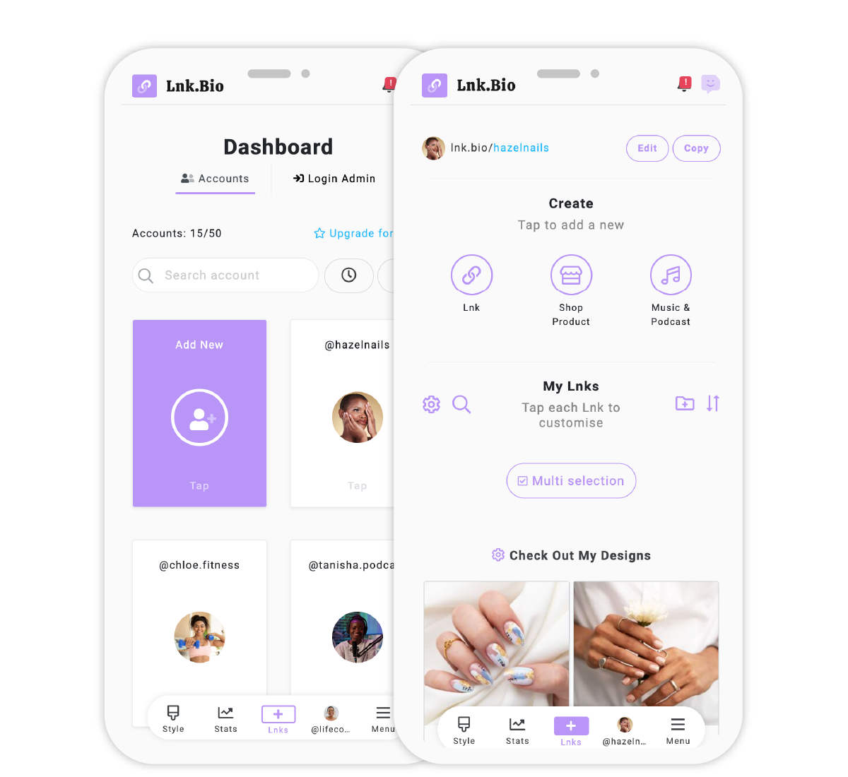Manage all your talents from a single panel. Create their custom urls and manage their links on their behalf.